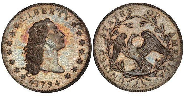 The coining of both gold and silver was delayed by the inability of the U. S. Mint's assayer and coiner to post the bonds required for the handling of precious metals. This problem ultimately was solved when two wealthy advocates of the Mint posted the requisite funds on behalf of the officers. The first silver issues, aside from the brief production of half dismes in 1792, were the dollars coined in early October of 1794. Since the Philadelphia Mint's largest press was not suited for striking a coin of this size, the impressions were incomplete. This resulted in only 1,758 acceptable coins out of an estimated 2,000 struck.