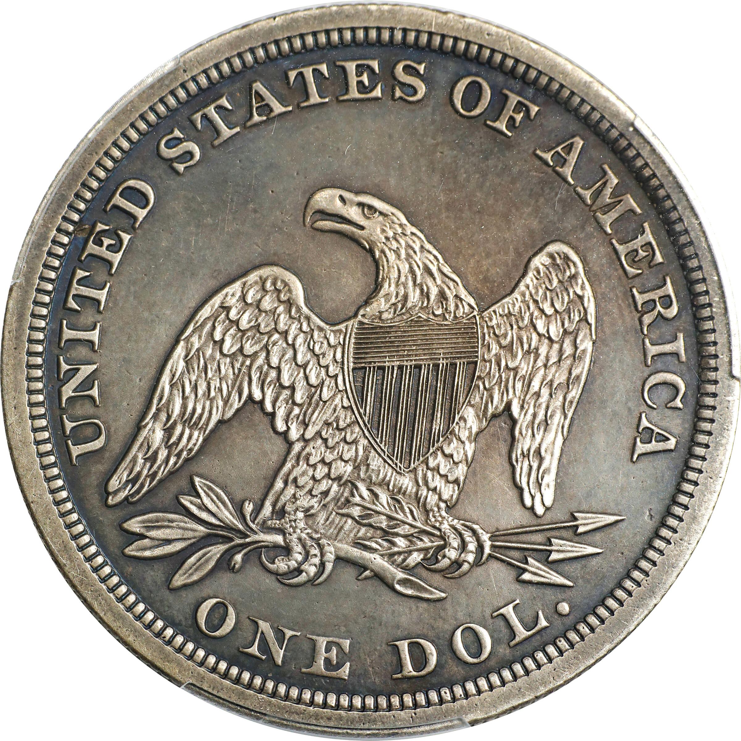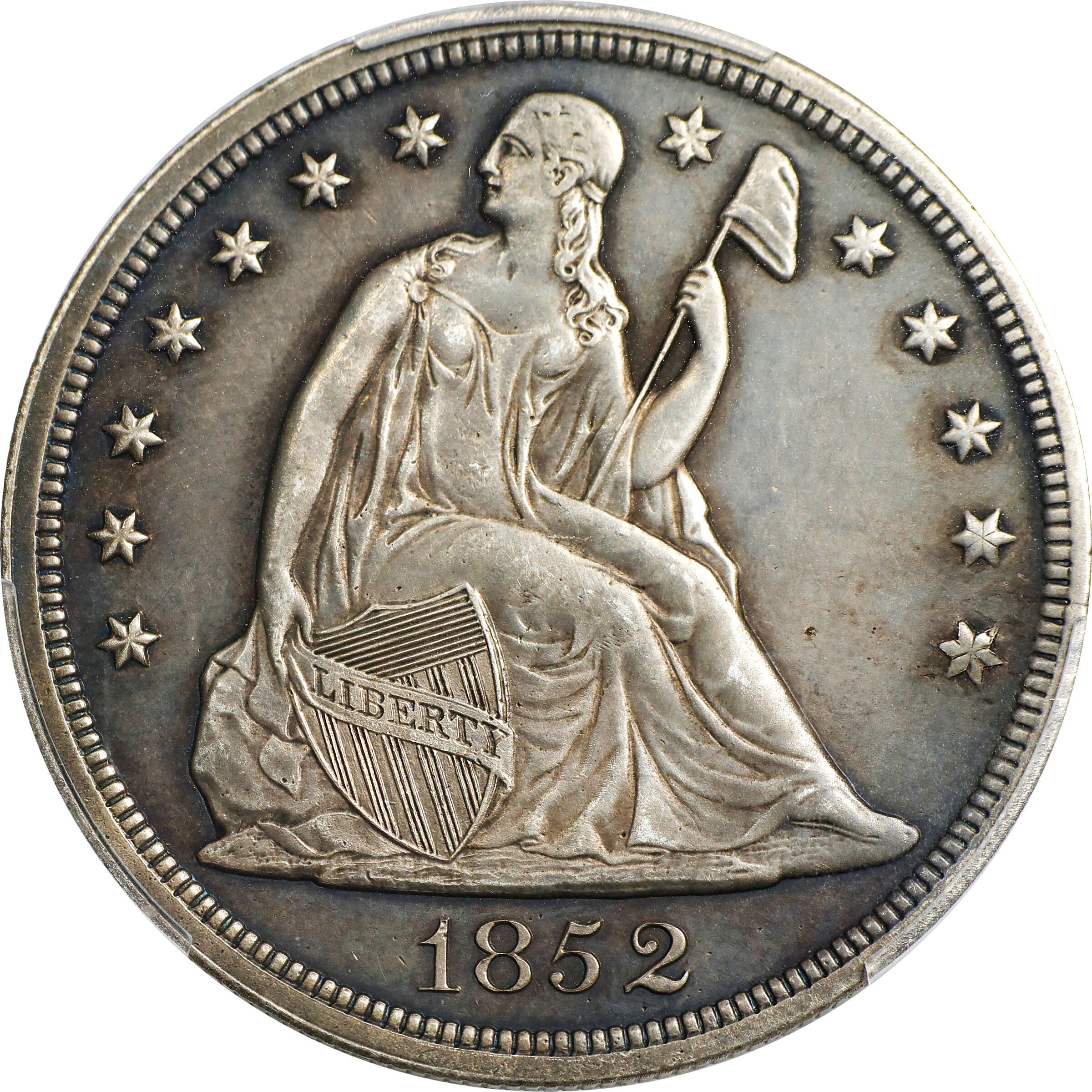 1852 Liberty Seated dollars are old silver coins that are widely collected by those who build type sets of 19th-century United States coins and individuals who enjoy rare coins in general. Seated Liberty dollars were struck during the years 1840 through 1873, but they primarily circulated during the 1840s and 1850s. As the 1850s drew to a close, silver bullion prices increased and Liberty Seated dollars were largely relegated to foreign trade.