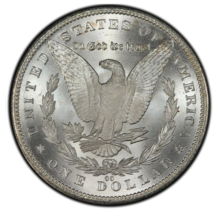Morgan Dollars (1878-1921) - After 1873, there was a short hiatus from U.S. dollar production. But in 1878, the Mint began to again strike silver dollars under the orders of the Bland-Allison Act. Created by Charles Morgan, the new dollar design was produced until 1904 and then again for one year in 1921. The Morgan dollar features a portrait of Lady Liberty on the obverse with a crown adorned with wheat, and cotton. The reverse offers an eagle with wings spread clutching a crop of arrows and an olive branch clutched in its talons. The coins were struck in 90% silver and are .7734 of a troy ounce. They are popular today with silver buffs and collectors alike. In fact, they are perhaps the most collected series in all of U.S. numismatics.