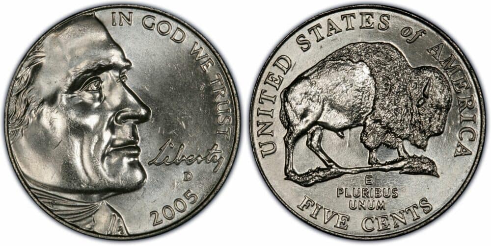 The United States mint calls the 2005 Buffalo Nickel the American Bison Nickel. The coin is a part of the Westward Journey Nickel series, a program that produced commemorative coins in 2004 and 2005. The 2005 Buffalo nickel has the following inscriptions;