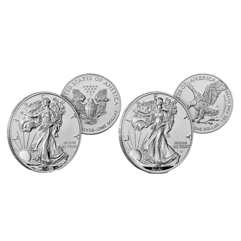 - You’ll receive two 2021 American Silver Eagle coins, one with the Type 1 design, the other with the Type 2.