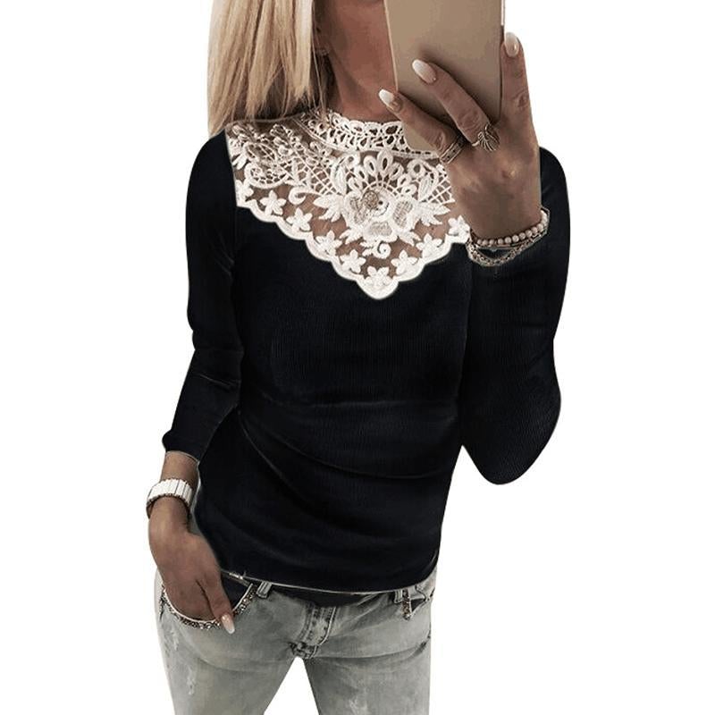 Fashion Lace Stitching Pit Long Sleeve T-Shirt