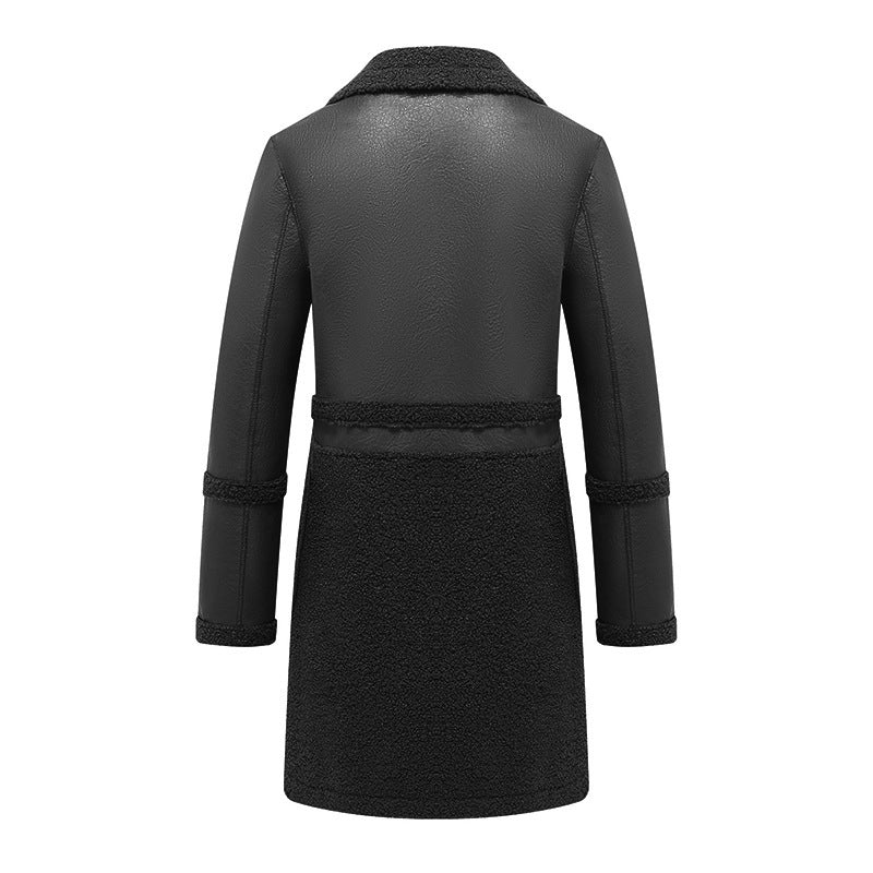Long Reversible Plush Leather Jacket For Women