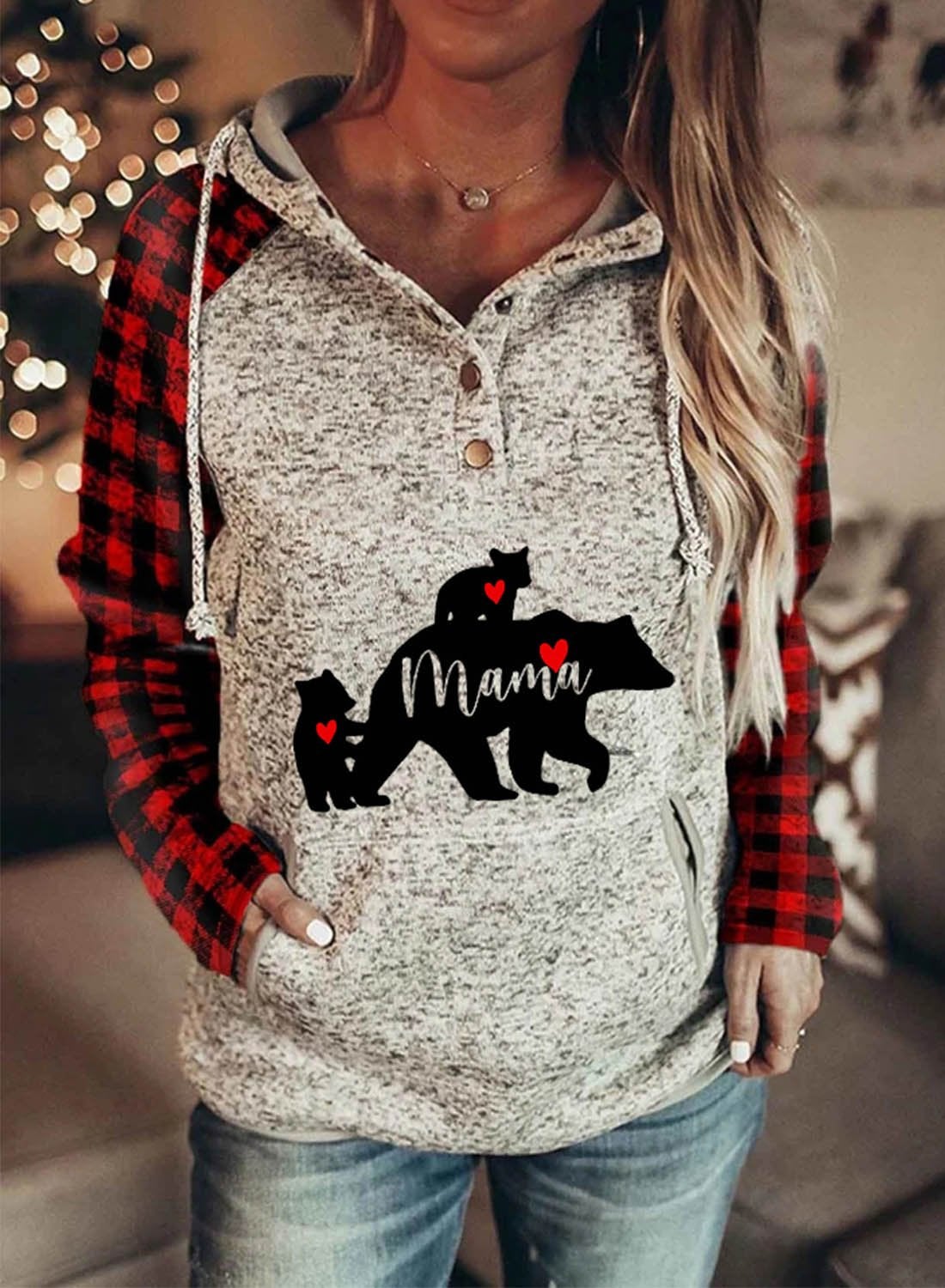 Mama Bear Hoodie Plaid Hooded Sweatshirt Sweater