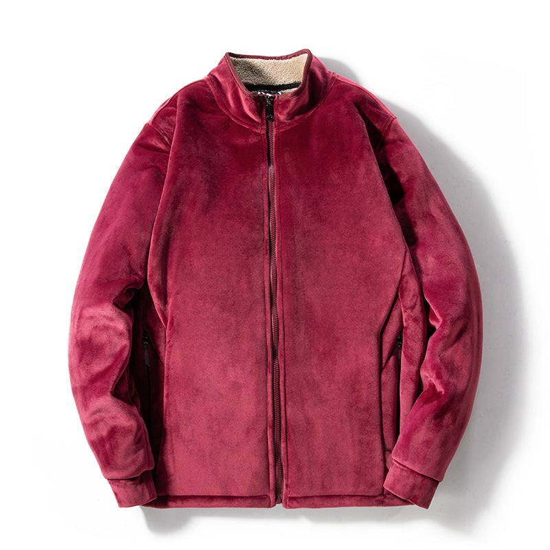Men's Velvet Coat Stand Collar Sherpa Lined Jacket