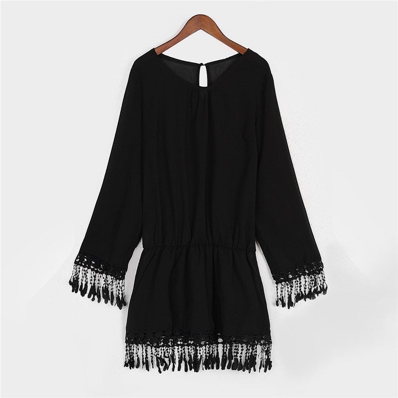 Sexy Long-Sleeved Fringed Dress Women's Beachwear Sunscreen Clothing