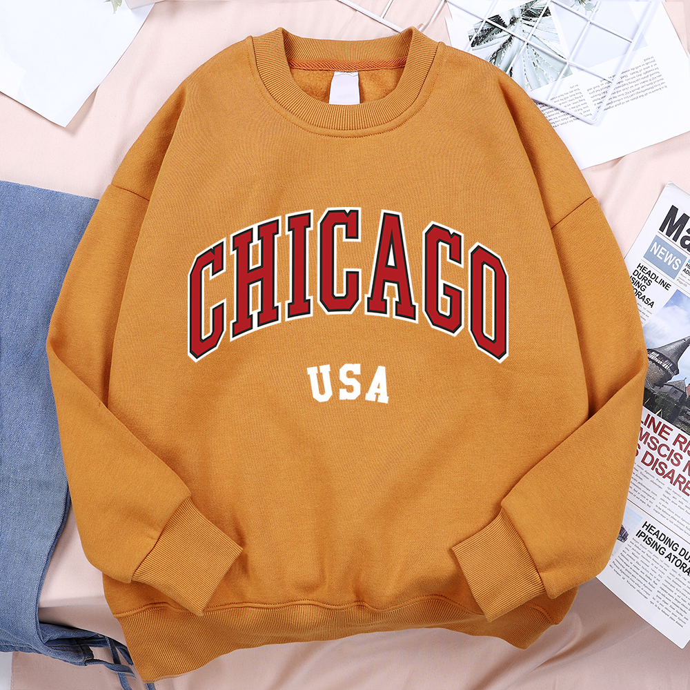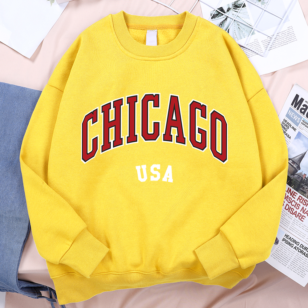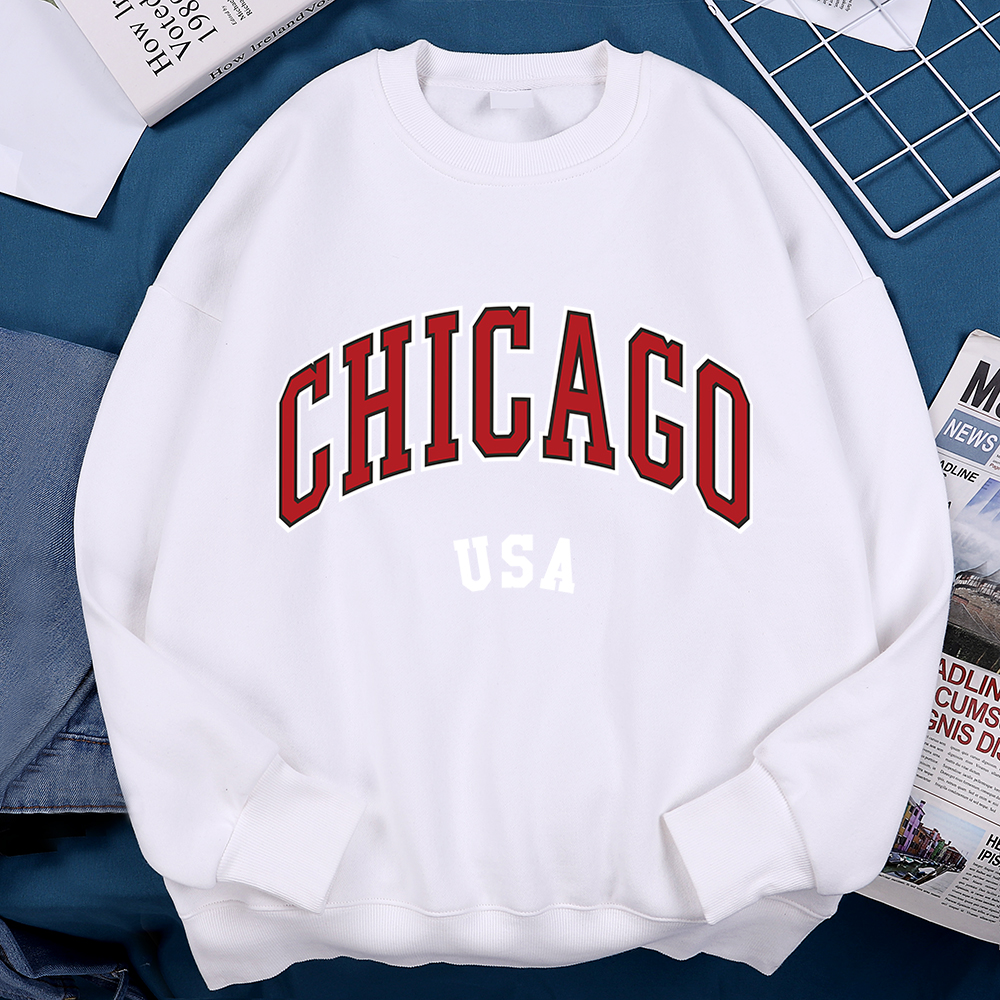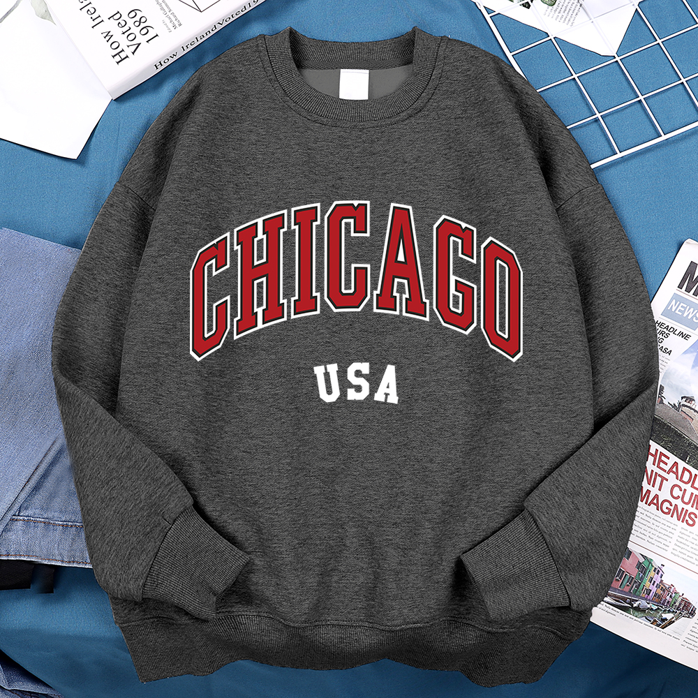 Unisex Chicago Usa Classic City Graphic Printed Casual Pullover Sweatshirt