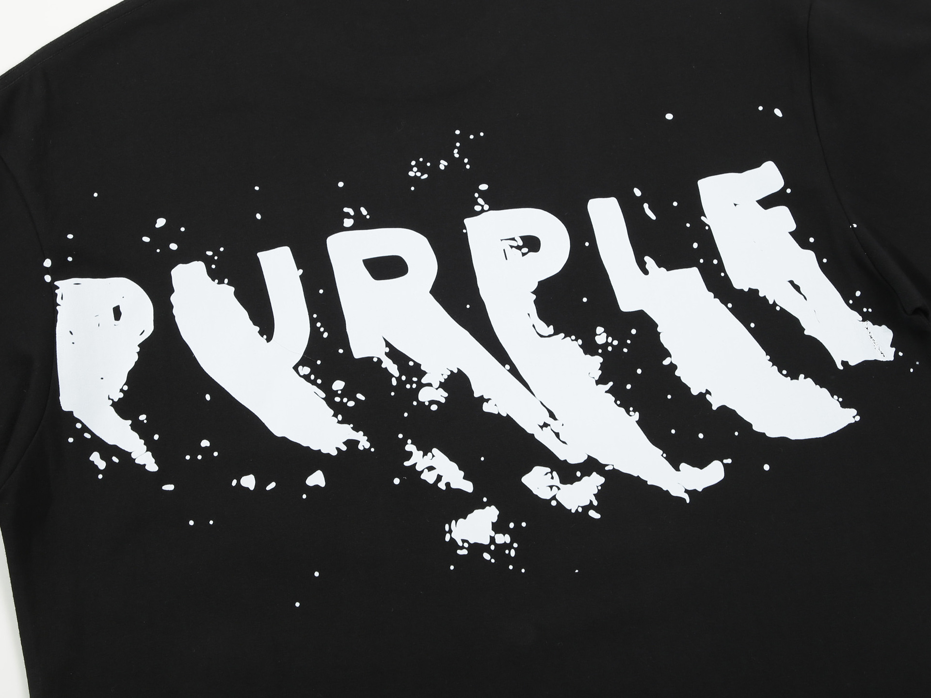 Unisex Trendy Niche Purple Splash Letter Print Black Cotton Short Sleeve T-Shirt