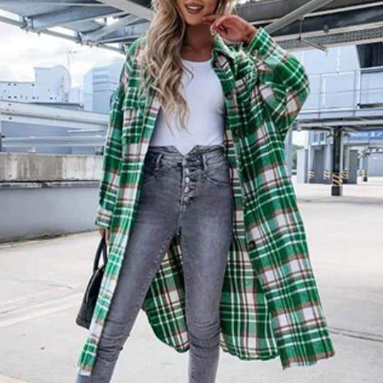 Woman Lengthened Plaid Shirt Jacket