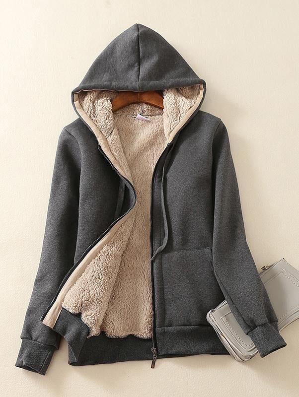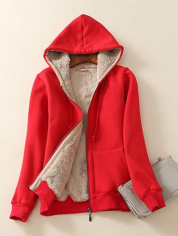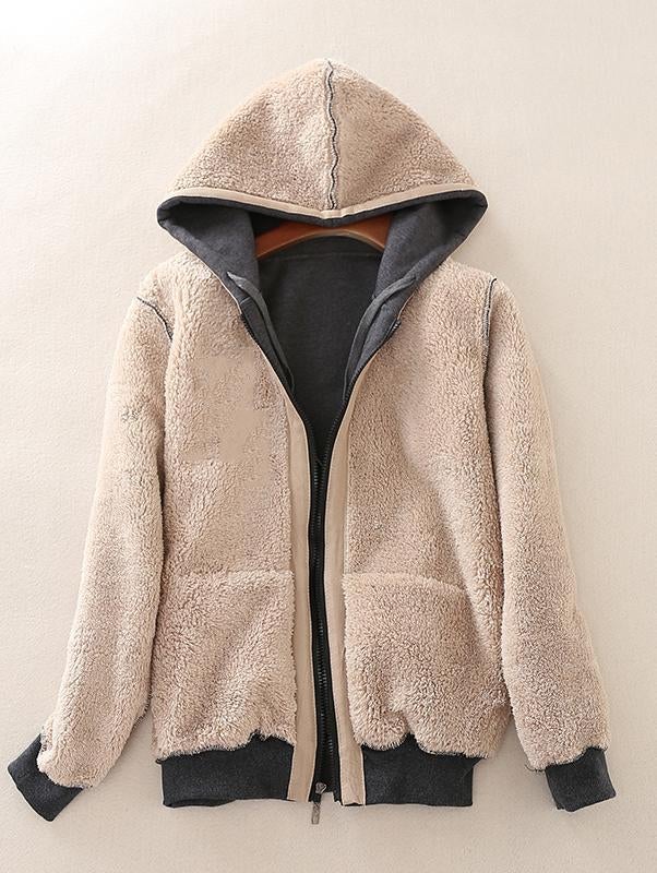 Women Coat Lamb Hooded Color Zipper Hoodie Sweater