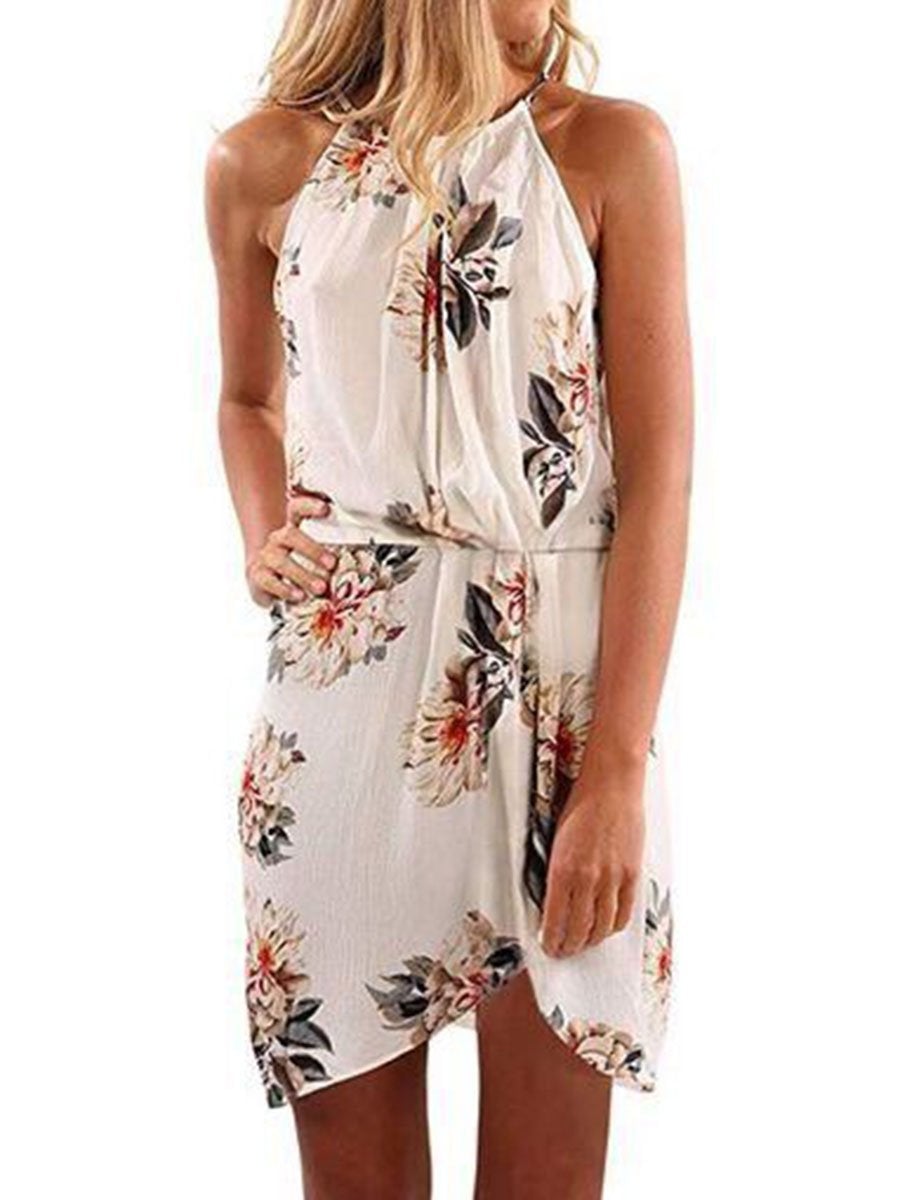 Women's Casual Dress Sleeveless Halter Floral Dress