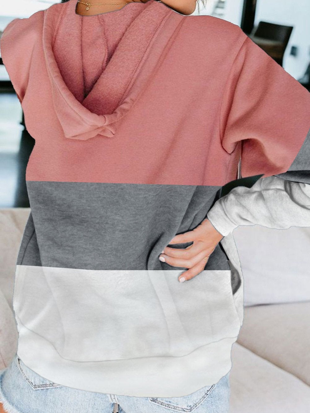 Womens Color Block Hoodie Zipper Lace Hooded Sweatshirt