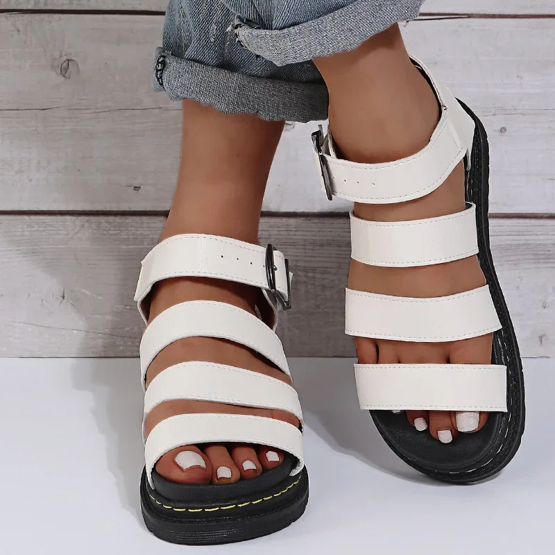 Women's Cool Thick Sole Casual Round Head Buckle Open Toe Platform Roman Sandals