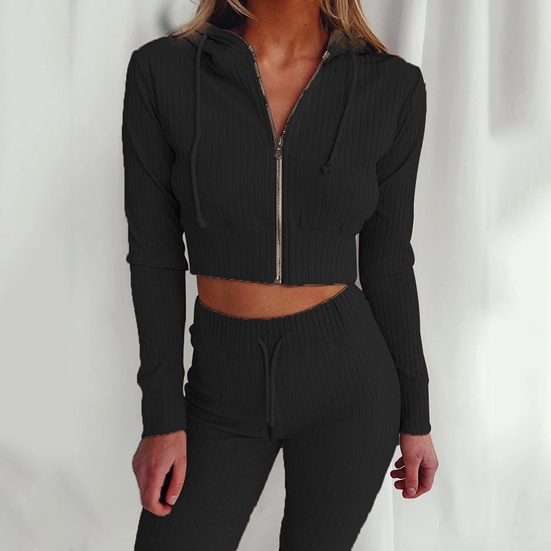 Women's Hooded Long Sleeve Slim Sports Casual Suit