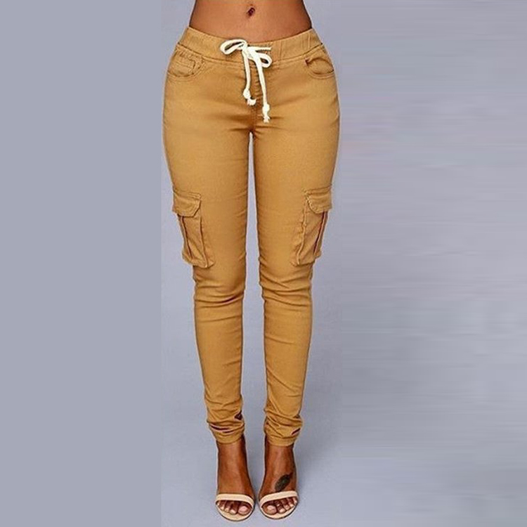 Women's Multi-pocket Drawstring Lace Ladies Casual Pants