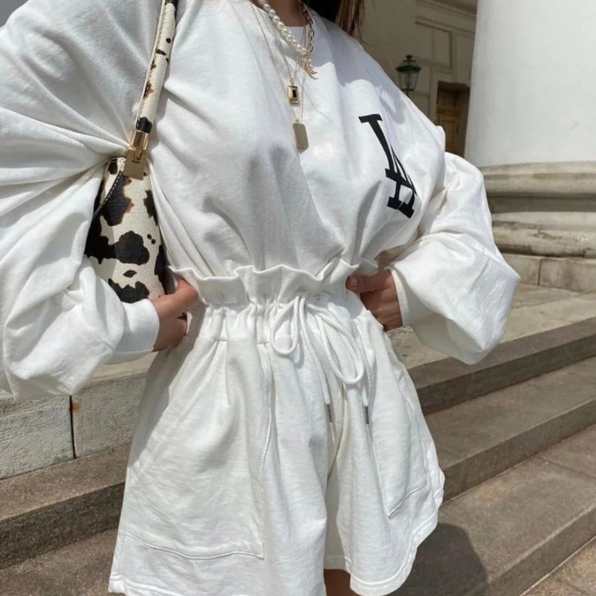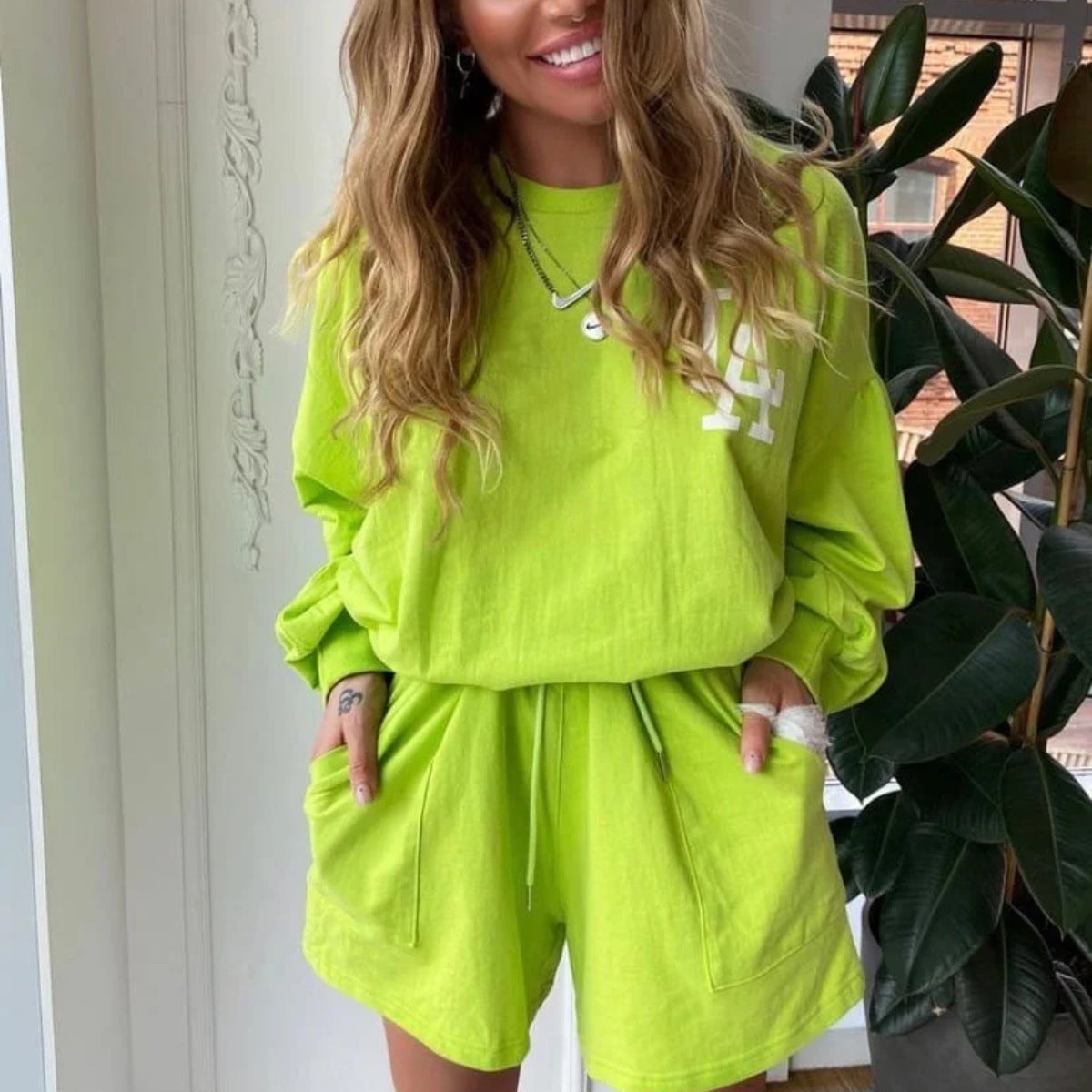 Women's Printed Loose Long Sleeve Shorts Fashion Casual Sweater 2 Piece Set