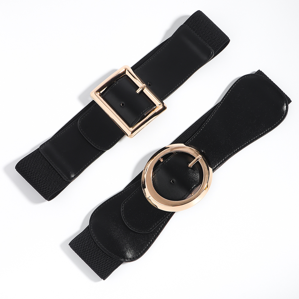 Women's Simple Metal Pin Buckle Black Elastic Waist Belt Slim Accessory Belt
