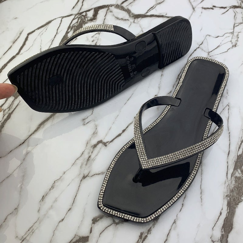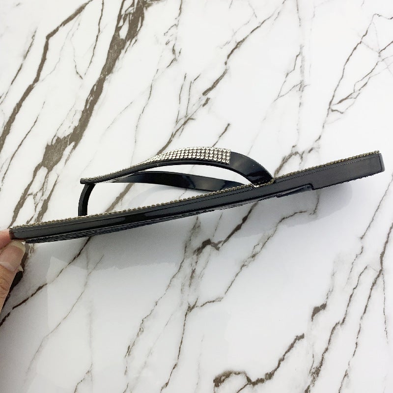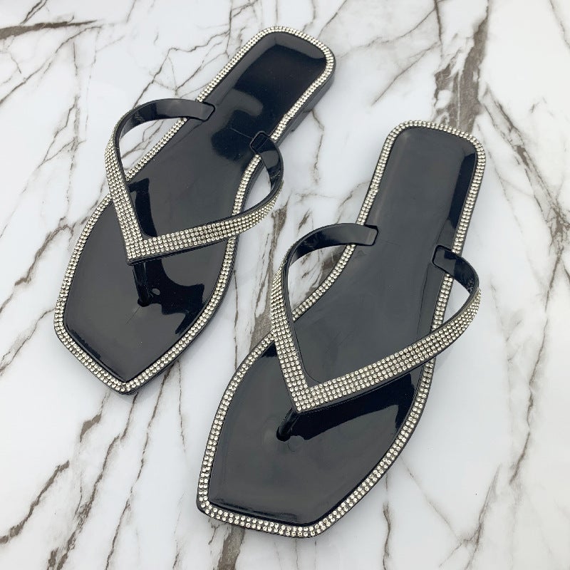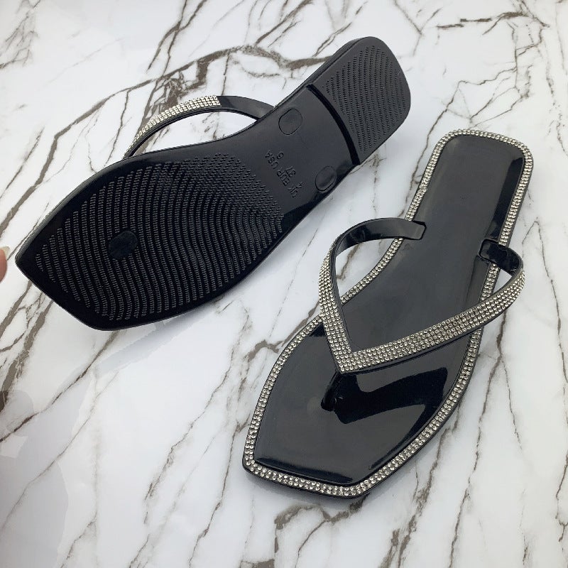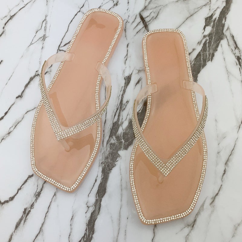 Women's Summer Slippers Rhinestone Shiny Flat Slippers
