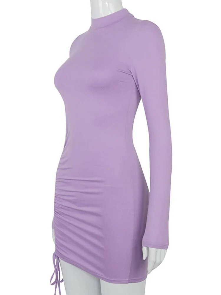 Women's Turtleneck Slim Sexy Long Sleeve Ruched Bodycon Dress Party Dress