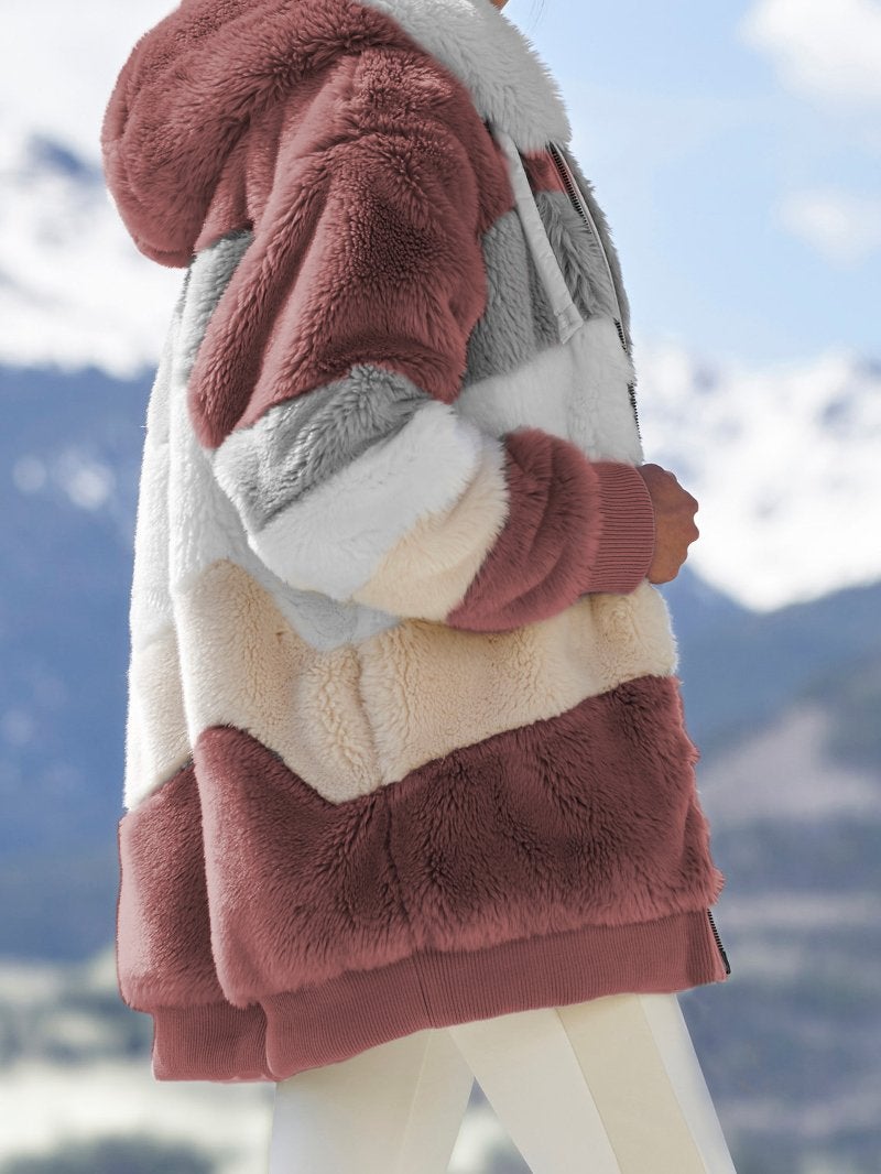 Women's Winter Warm Coat Contrasting Lamb Wool Padded Coat