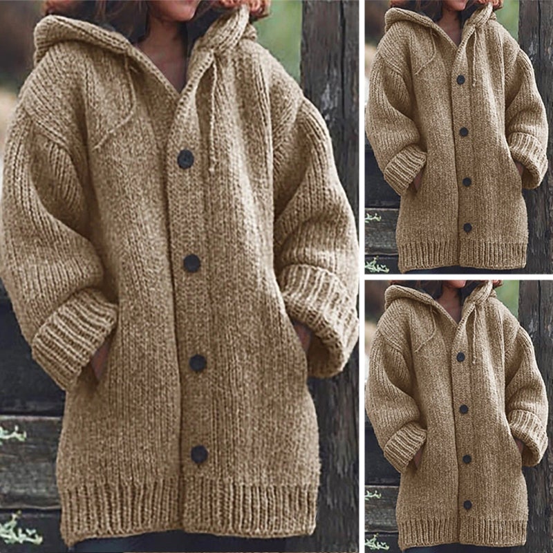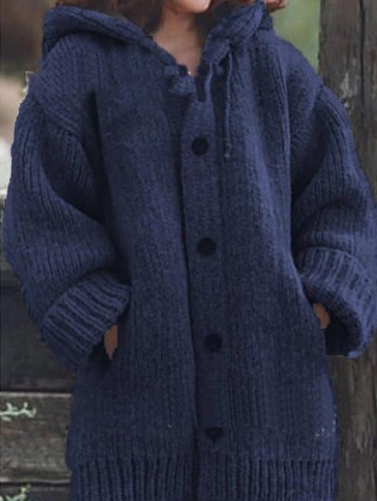 Hooded cardigan, coordinated and practical buttons, two patch pockets, ribbed cuffs and hem, for casual and comfortable wear.